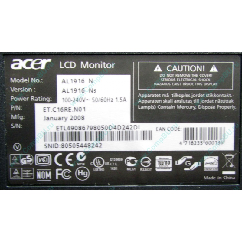 Общие характеристики Acer AL1916 Ns